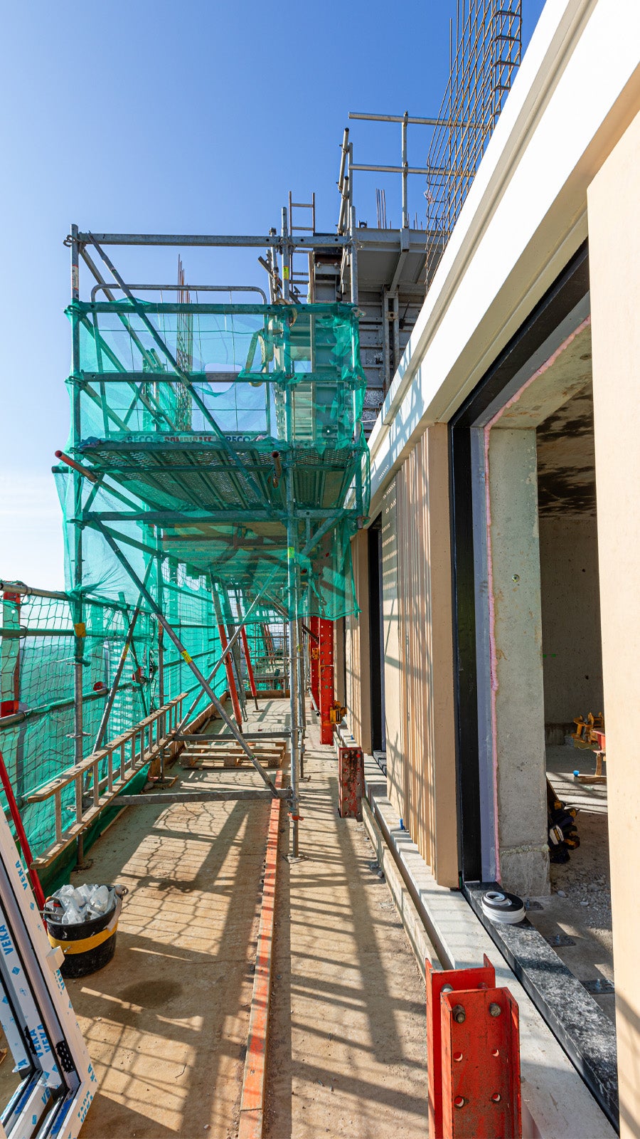 Deze oplossing maakte het ook mogelijk om de twee bouwblokken die aansluiten op de hoogbouw er gewoon achteraan tegenaan te bouwen. Als hier een traditionele steiger had gestaan, had ik die gebouwen nog niet af kunnen maken. We hadden nog niet eerder met PERI gewerkt, maar dit project is een mooi voorbeeld van hoe je met de juiste partners in het proces en met het gezamenlijke doel voor ogen op zoek kunt gaan naar een manier die daarbij aansluit. En dat is gelukt.”