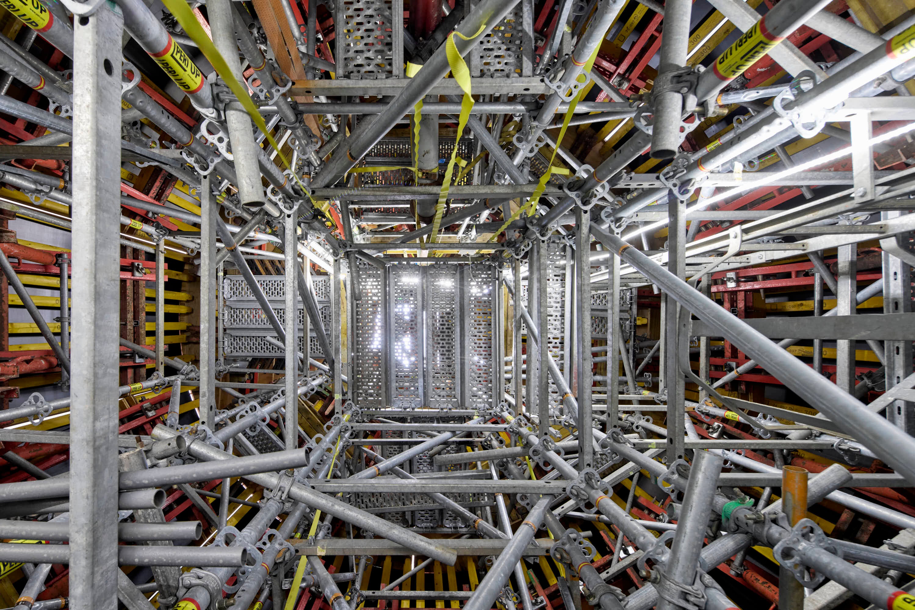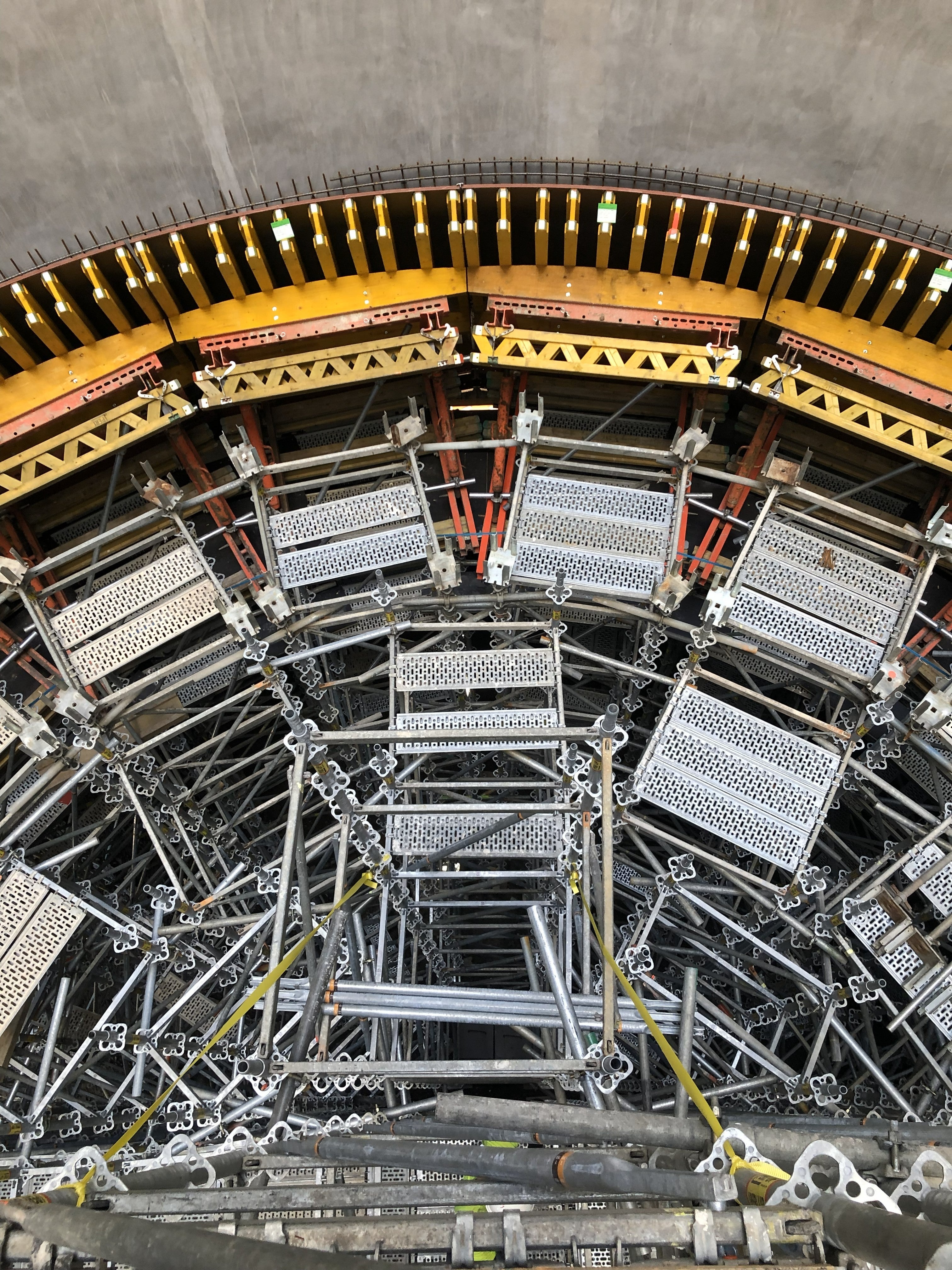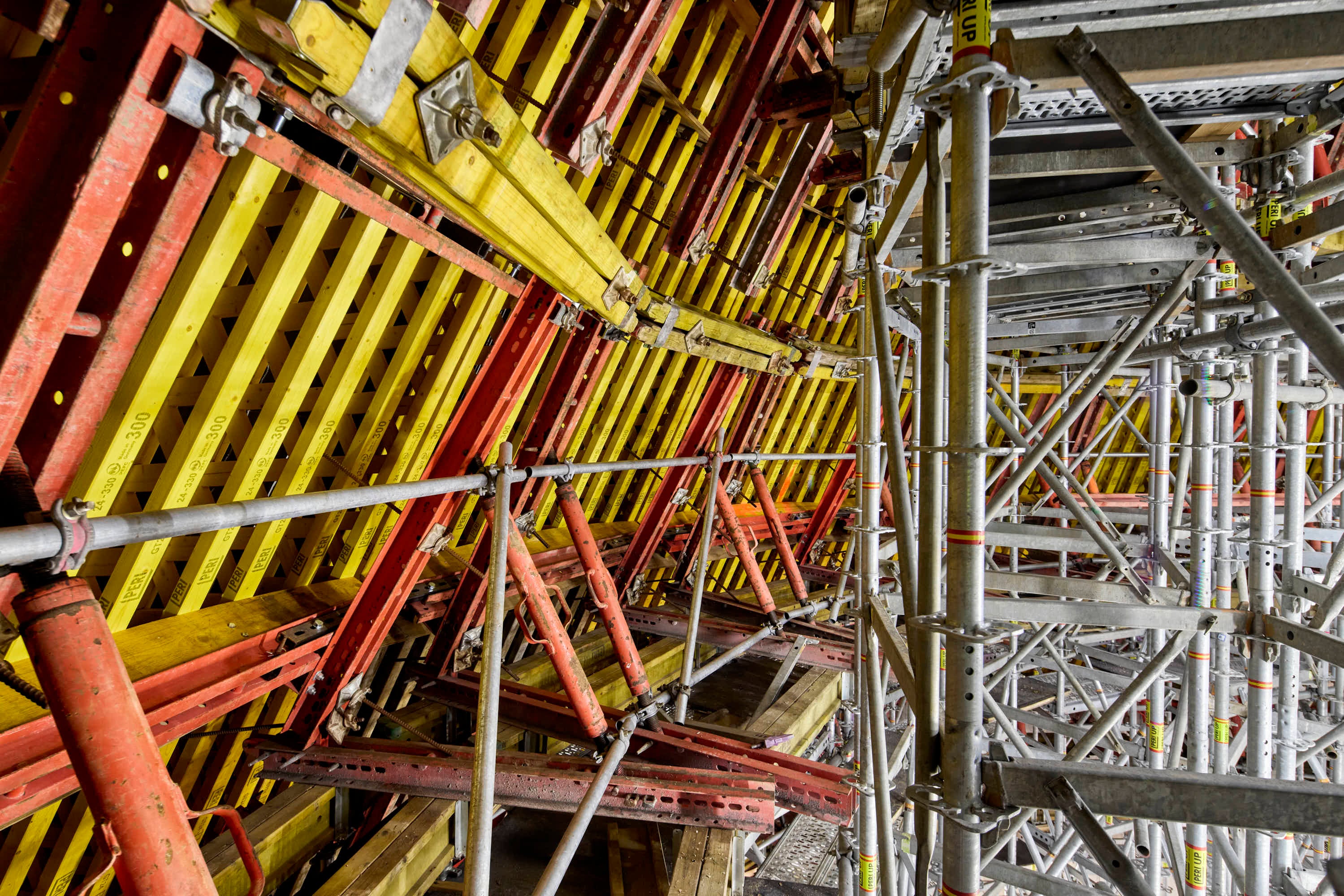 Vandaar ook de nood aan een hele reeks specifieke bekistings- en ondersteuningssystemen. Gezien de gigantische omvang van het project en de vereiste hoeveelheden werd hiervoor een beroep gedaan op diverse leveranciers, waaronder PERI. Over de hele werf bekeken, is PERI goed voor een aandeel van 15 tot 20 %, oftewel een bekiste oppervlakte van circa 12.000 m².