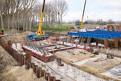 De grote uitdading op het vlak van bekisting is ongetwijfeld de grote hoeveelheid TRIO paneelbekisting, nodig voor de randbekisting fundering, pijlers, balken en landhoofden.